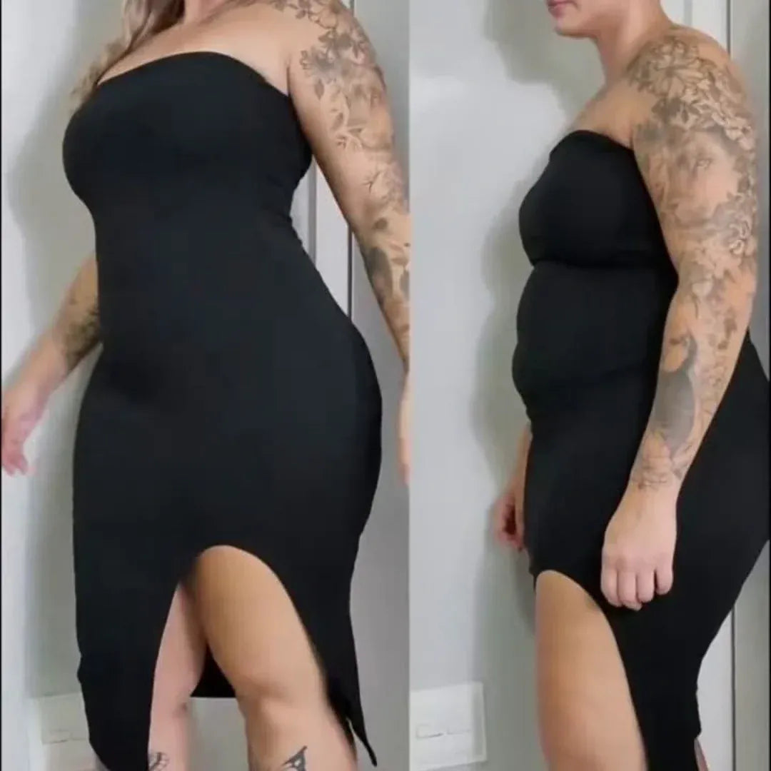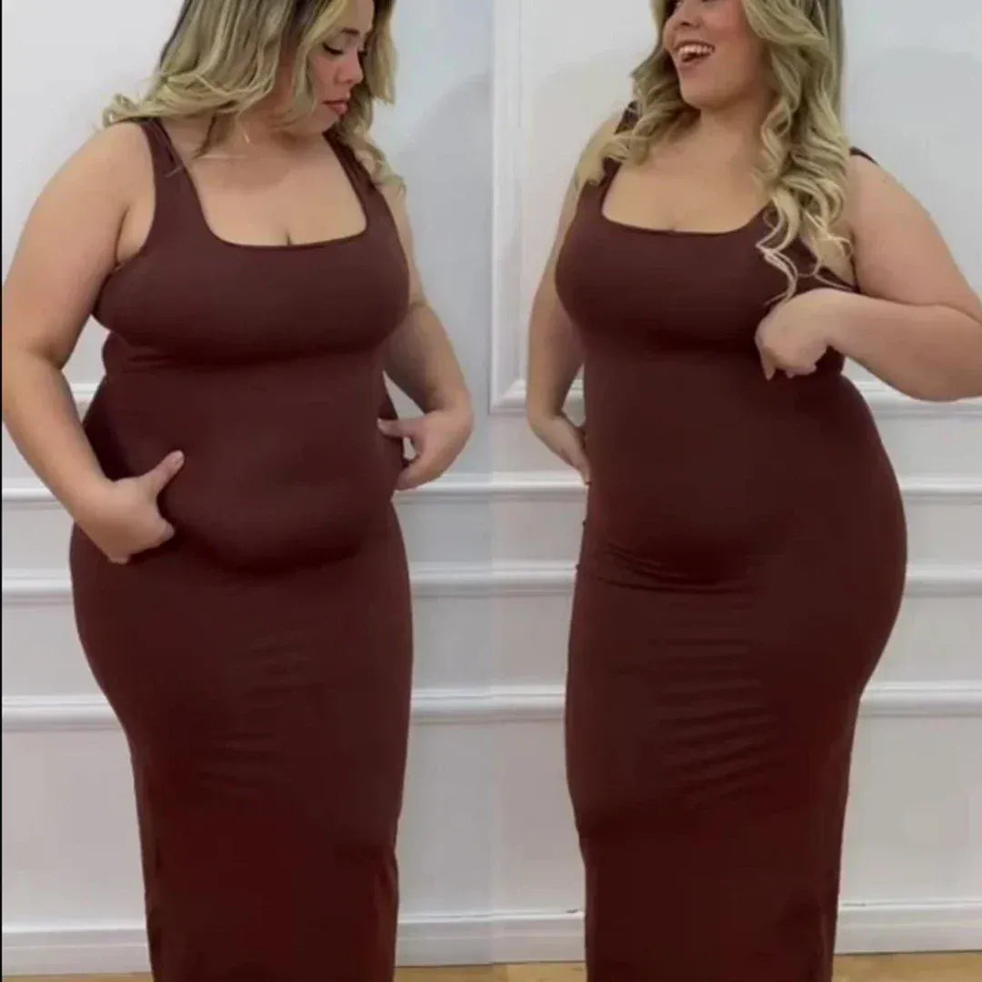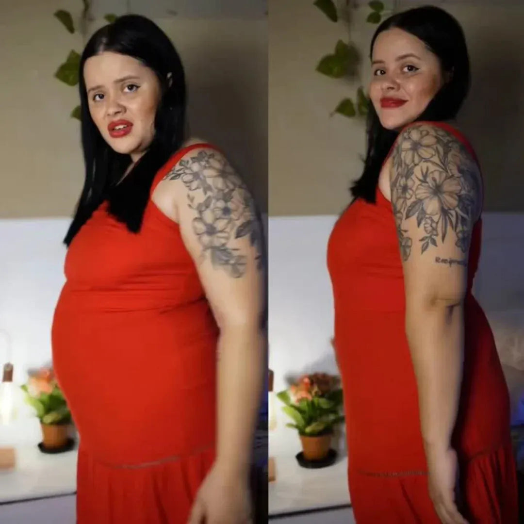 A minha cintura desapareceu após a gravidez. Com a Elegança, ela voltou! Agora tenho um corpo em forma de ampulheta. O vestido que comprei para o casamento da minha prima serviu-me na perfeição.