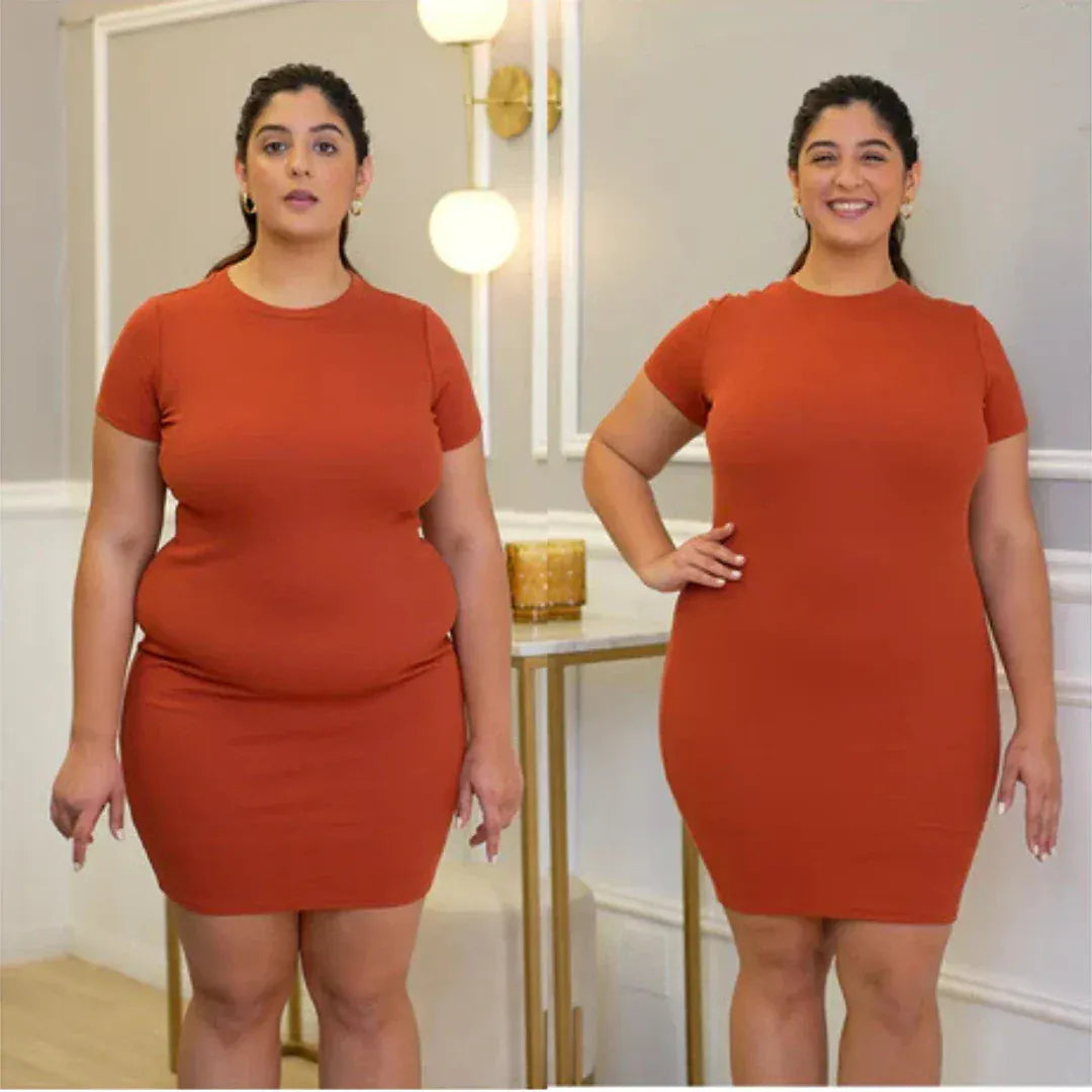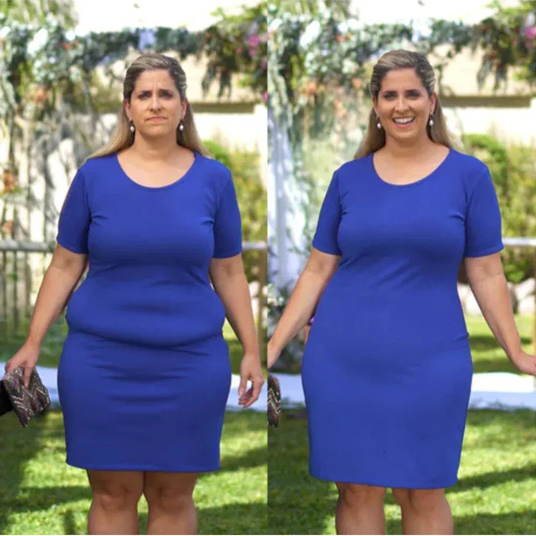 As minhas gordurinhas nas laterais do corpo eram o meu maior complexo. O modelador afinou instantaneamente a minha cintura, eliminando as «dobras». A diferença é tão notável que toda a gente repara! Agora posso usar blusas e vestidos justos que realçam a minha silhueta sem me preocupar.